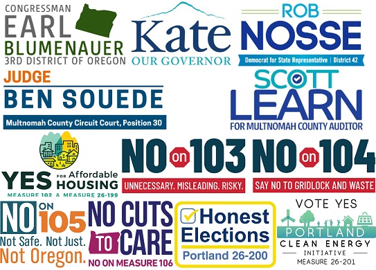 | Gives voters option to rank candidates in order of preference; candidate receiving majority of votes in final round wins | Portland Mercury League of Women Voters of Oregon |